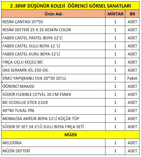DK 2.SINIF ÖĞRENCİ GÖRSEL SANAT LİSTESİ