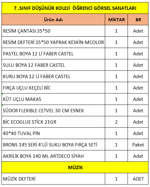 DK7.SINIF ÖĞRENCİ GÖRSEL SANAT LİSTESİ